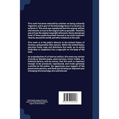 This work has been selected by scholars as being culturally important, and is part of the knowledge base of civilization as we know it. This work was reproduced from the original artifact, and remains as true to the original work as possible. Therefore, you will see the original copyright references, library stamps (as most of these works have been housed in our most important libraries around the world), and other notations in the work.This work is in the public domain in the United States of America, and possibly other nations. Within the United States, you may freely copy and distribute this work, as no entity (individual or corporate) has a copyright on the body of the work.As a reproduction of a historical artifact, this work may contain missing or blurred pages, poor pictures, errant marks, etc. Scholars believe, and we concur, that this work is important enough to be preserved, reproduced, and made generally available to the public. We appreciate your support of the preservation process, and thank you for being an important part of keeping this knowledge alive and relevant.