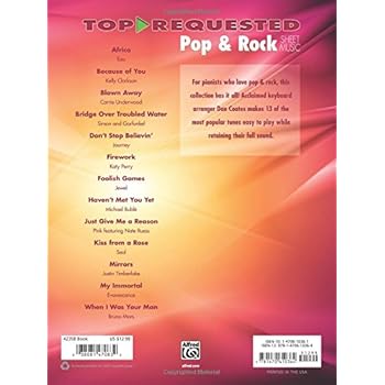 For pianists who love pop & rock, this collection has it all! Acclaimed keyboard arranger Dan Coates makes 13 of the most popular tunes easy to play while retaining their full sound. Titles: Africa (Toto) * Because of You (Kelly Clarkson) * Blown Away (Carrie Underwood) * Bridge Over Troubled Water (Simon and Garfunkel) * Don't Stop Believin' (Journey) * Firework (Katy Perry) * Foolish Games (Jewel) * Haven't Met You Yet (Michael Bublé) * Just Give Me a Reason (P!nk featuring Nate Ruess) * Kiss from a Rose (Seal) * Mirrors (Justin Timberlake) * My Immortal (Evanescence) * When I Was Your Man (Bruno Mars).
